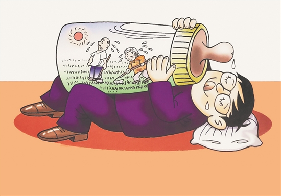漫画是讽刺的艺术。讽刺大致有两项功能,一是让读者看着感到出气,二是被讽刺对象看着觉得脸红。有的漫画不仅让被讽刺者脸红,也令一部分读者看后替“当事人”发烧,这样的作品就值得多多转发了,比如漫画家牛力先生的作品《何时断奶》。