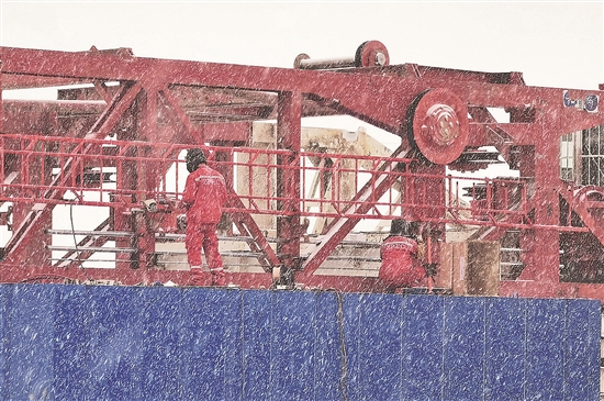 2月8日18时35分,在宁夏回族自治区吴忠市盐池县大水坑镇的一处戈壁上,完成了井架和梯笼焊接任务的刘波拍了拍身上的雪花,露出了疲惫而又轻松的笑容。他和工友们已在冰天雪地的戈壁上忙碌了整整7天。再过几天,这套能钻探地下7000米的石油钻机通过长庆油田专家们的现场验收后,就要起升开钻了。与在工厂焊接相比,风雪中作业难度加大——既要防止雪花打湿焊枪,又要焊得严丝合缝。郝东磊 摄