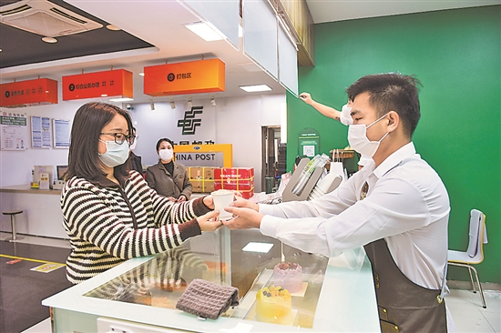 深圳首家咖啡主题邮局2月14日在南山区科技园邮政支局正式落地。邮政营业厅从功能单一的传统服务大厅变为市民可以社交、品尝咖啡、体验邮政文化的全新场景。在这里,传统邮政网点提供的函件、包裹寄递等服务一应俱全,另外设有一个专门的咖啡柜台。专业咖啡师在此调制不同风味的咖啡等饮品,客户可以在办理业务的同时品尝咖啡。