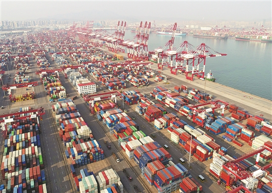 这是山东港口青岛港(2月16日摄,无人机照片)。