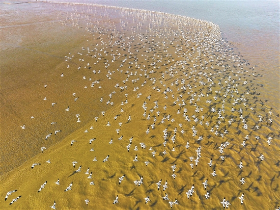 江苏省连云港市连云区拥有优质的海岸资源,是近海生物重要栖息繁殖地和鸟类迁徙中转站,已连续多年吸引反嘴鹬来此越冬。贺敬华 摄/人民图片
