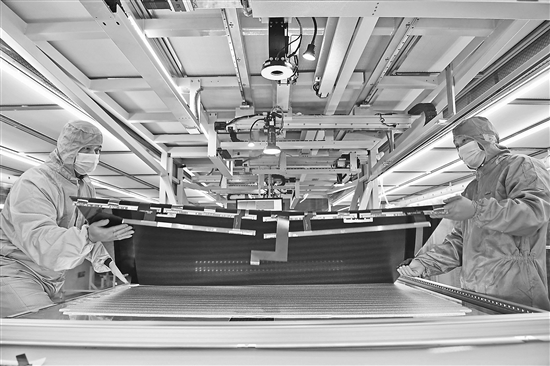 2月17日,安徽省淮南市高新区新型显示产业园内,一家企业职工在加工智慧显示屏。安徽省淮南市作为传统煤电资源型城市,从“煤电独大”到“非煤崛起”,改造提升传统产业,做大做强新一代信息技术、新材料、新能源汽车及零部件、高端装备制造、生命健康、绿色食品六大新兴产业,加速资源型城市转型升级高质量发展。陈彬 摄/人民图片