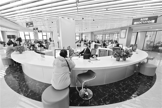 近年来,甘肃省武威市持续推进政务服务改革,搭建优质高效便捷的服务平台。通过推出“全程网办”“一网通办”“一窗受理集成服务”“24小时自助服务”等服务举措,优化办事流程、缩短办事时效,打造“线上线下合一、前台后台打通、纵向横向联动”的政务服务新模式,深受群众好评。图为市民在武威市政府政务服务中心办理业务。