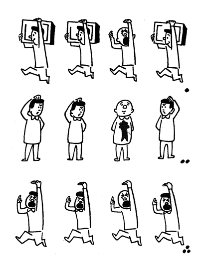 漫画和表演同属视觉艺术,因而漫画家们一向很关心表演艺术取得的成果和突破。从功能上看,漫画创作者更注重读者期待的喜剧效果,由此可见,漫画更关注那些不同寻常的表演技巧,比如非常考验演员演技的无实物表演。