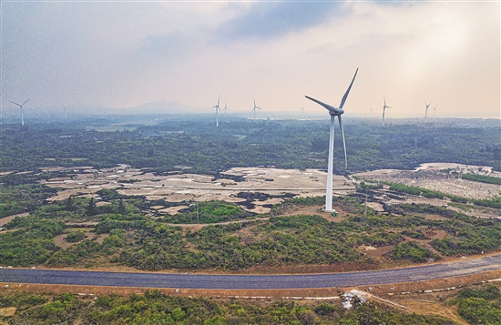 在海南省儋州市峨蔓镇拍摄的建设中的海南环岛旅游公路(无人机照片,2月24日摄)。