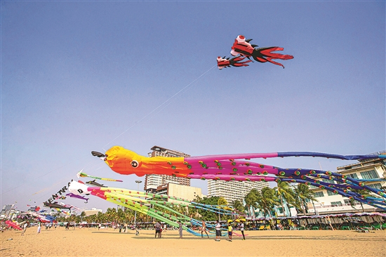 泰国芭提雅近日举办海滩风筝节。这是当地时间2月27日在芭提雅海滩拍摄的大型风筝。新华社记者 王腾 摄