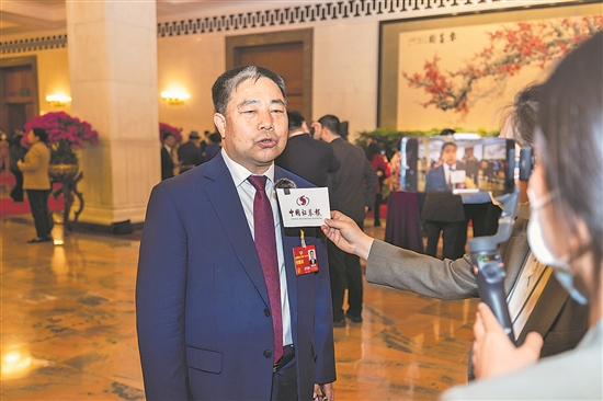 图③:3月7日,辽宁省政协副主席、辽宁省工商联主席赵延庆委员接受媒体采访。今年全国两会,赵延庆委员提交了《关于推动民营企业产业结构优化升级的对策提案》。