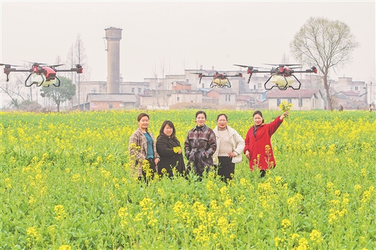 2019年,在妇联的支持下,她的团队组织当地留守妇女进行无人机操控培训,成立女子植保飞防队,为需要播种、打药的农户提供服务,带领她们增收致富。