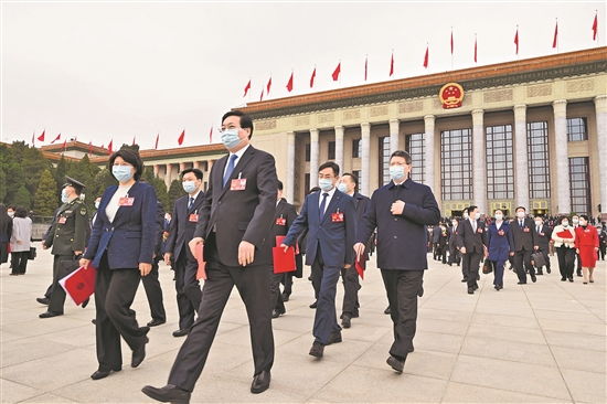 图为闭幕会后,代表们走出人民大会堂。新华社记者 陈益宸 摄