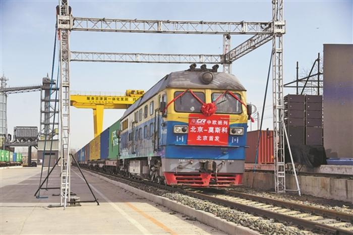 当日,一列满载建材、家电、服装等货物的中欧班列,从北京平谷地方铁路马坊站缓缓开出,驶向千里之外的莫斯科。这是北京发出的首列直达欧洲的中欧班列。
