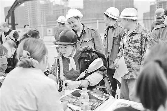量血压、测心电、测血糖……近日,在中建信和西南区域公司施工工地现场,在医护人员的引导下,工人们有序登记,排队体检。
