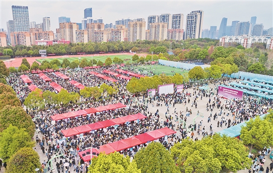 这是3月16日拍摄的云南师范大学呈贡主校区校园招聘会现场(无人机照片)。