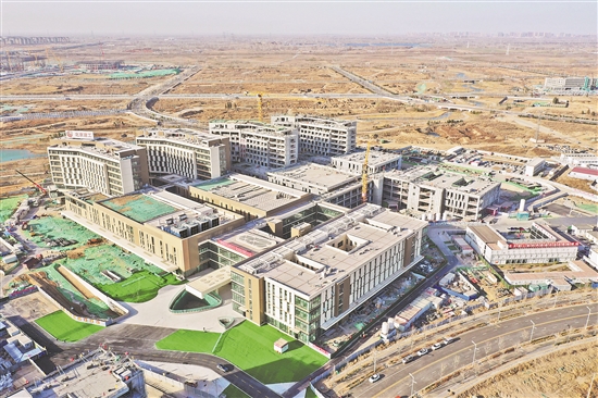 这是位于雄安新区启动区的雄安宣武医院项目现场(3月15日摄,无人机照片)。