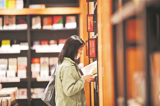 图为日前,贵州省仁怀市,西西弗书店内市民在翻阅书籍。