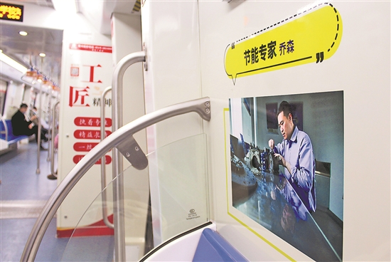 3月23日,江苏常州地铁轨道交通1号线“工匠号”地铁专列吸引了众多市民乘坐体验。这一专列由市总工会牵头布置,以“图片+视频”的形式展示了30位“龙城工匠”的先进事迹。王启明 摄/视觉中国