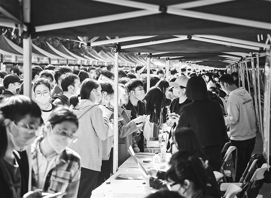 当日,2023年西安市春季大型人才招聘会暨高校毕业生专场招聘会在陕西省体育场举行。招聘会共有400余家企业提供岗位1万余个,涉及科研创新、新能源、互联网、金融、先进制造、工程建设、教育医疗、文化旅游等多个行业。新华社发(邹竞一 摄)