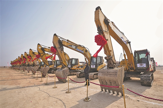 当日,作为国家支持东北振兴的重点项目,由华锦阿美石油化工有限公司实施建设的精细化工及原料工程项目(简称华锦阿美项目)在辽宁盘锦破土动工。该项目由中国北方工业集团所属华锦集团、沙特阿美公司及盘锦鑫诚集团合资合作,项目总投资837亿元。新华社记者 潘昱龙 摄
