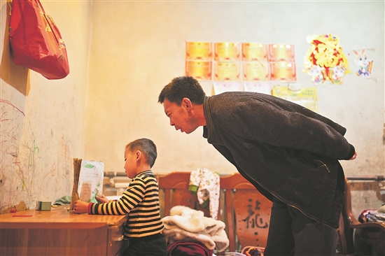 3月27日晚,在雄县米家务镇的一座平房里,与新区同岁的一名男童正在父亲王福军的监督下识字朗读。他拿着姐姐的语文课本,有板有眼地读着,站在身后的王福军不时露出欣慰的笑容。“这小子脑瓜子好使,就是太淘气。”晚婚晚育的王福军对儿子有着无限的期待,为了这份期待,他在给儿子起名时打破按族谱起名的惯例,借用了新区的名字取名“王雄安”。