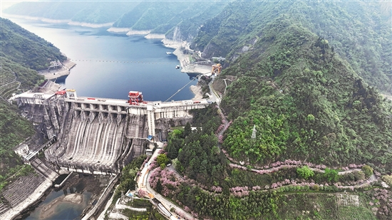 4月2日,黄龙滩水力发电厂水库大坝,机组满负荷运行实现首季发电“开门红”。