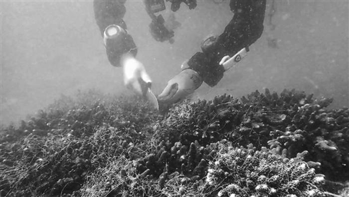 然而,水下考察的结果出乎所有人预料。“大鹏海域中,很难见到大片的珊瑚礁。”“潜爱”护礁总监张缪成说,“耐心找,才能在一些岩礁上找到一两株不大的珊瑚。”