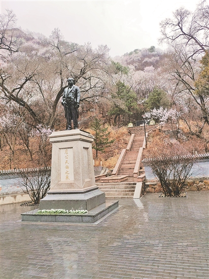图为位于青龙桥车站的詹天佑像。本报记者 赵昂 摄