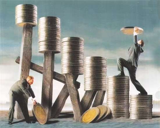 画面上的人物正费劲地搬运银洋并码成阶梯,显然是将金钱当成向“上”爬的垫脚石,这些“轻贱世俗,独立高步”之徒当心啊……