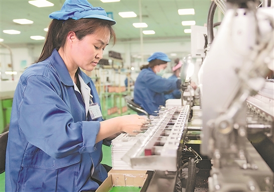 4月9日,工人在河北省青龙满族自治县青龙镇逃军山村一家电子产品企业工作。近年来,该县积极引导劳动密集型企业进农村,带动当地百姓在家门口就业。新华社记者 杨世尧 摄