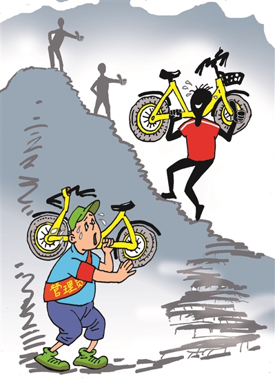 据媒体报道,近日,某社交平台上不少用户发起“抬共享单车上山”挑战,吸引一些人跟随模仿,但此举给共享单车正常运营带来了诸多麻烦。在广东深圳,一位共享单车运维大叔将一辆滞留在某景区山顶的单车搬下山,足足用了4个小时。