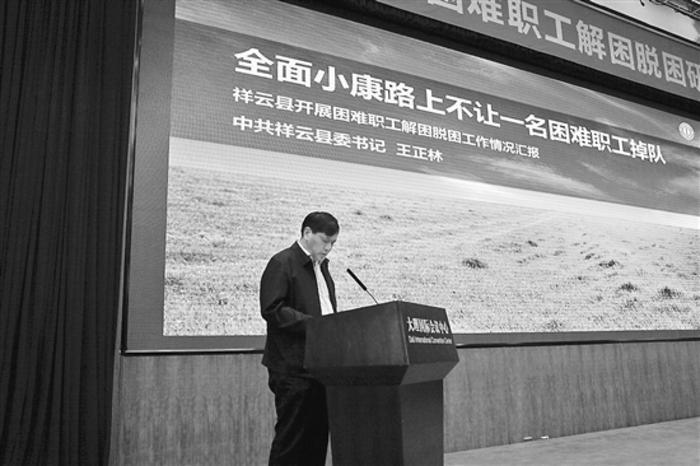 2017年9月,祥云县时任县委书记王正林在“全国工会开展困难职工解困脱困研讨会”上,向与会领导介绍“祥云样本”的由来及进展情况。