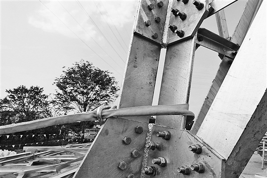 在立塔过程中,吊装用的钢丝绳套容易与铁塔发生摩擦,从而刮花铁塔的镀锌层,影响铁塔的使用寿命,存在一定的安全隐患。