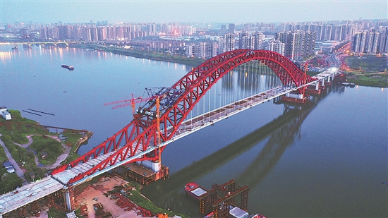 4月15日,随着最后一榀主梁块体安装成功,由中交三航局投资、承建的株洲清水塘大桥顺利合龙。合龙只在一瞬间,但只有确保每一榀主梁块体的位置严丝合缝地处于设计位置,才能实现主梁合龙的全程可控。项目建设团队创造性地提出“拱上吊梁”的工艺,配合数字化监测系统在距离水面34米的高空顺利完成大桥主拱毫米级的合龙。包媛媛 摄