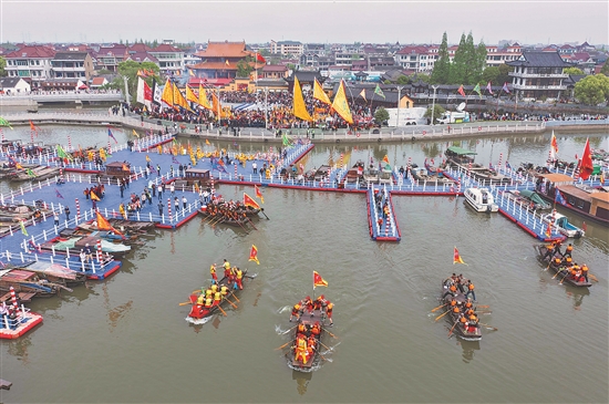 当日,大型民俗活动中国江南网船会在浙江省嘉兴市秀洲区王江泾镇莲泗荡风景区举办,江浙沪一带渔民、船民纷纷驾船前来赶庙会,呈现一场“水上民俗盛宴”。