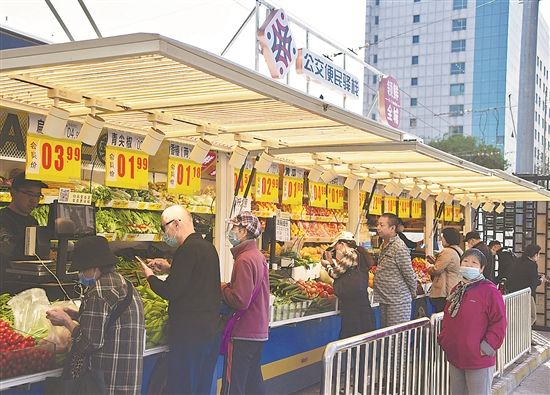 近期,位于北京市朝阳区柳芳公交场站东北角的“公交便民驿栈”投入运营,市民可在“公交便民驿栈”购买蔬菜、水果等农产品。新华社记者 任超 摄