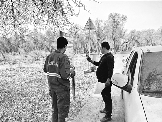 为保证安全,管护员两人一组外出巡视。“有时候一天下来,见不到第三个人。” 艾山·艾依提说。也因为此,时间长了,自己负责的区域哪里有人来过,什么地方被人翻动过,管护员们一眼就能看出来。