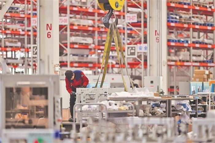 企业员工在天津长荣科技集团股份有限公司生产专区内工作。