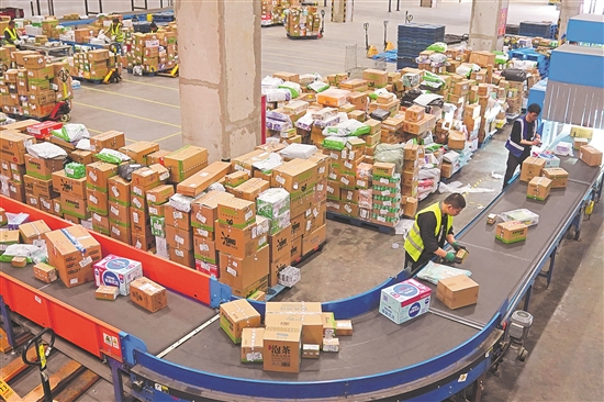 4月21日,员工在位于南京空港经济开发区(江宁)一家企业的商超仓内忙碌。