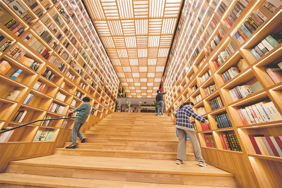 图③河北省邯郸市永年区的居民走进新华书店、图书馆、农家书屋等场所阅读书籍,享受读书带来的快乐。胡高雷 摄/人民图片