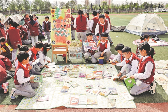 图④江苏省连云港市和安小学开展“我读书我快乐”主题活动,倡导孩子们多读书、读好书,养成良好的阅读习惯。视觉中国 供图