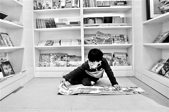 4月22日,北京市东城区新华书店地安门店·为宝书局,一位小书迷正阅读图书。近日,北京市东城区正式发布“我要开书店”创新政策,实体书店“四进”(进商场、进楼宇、进社区、进园区)绿色审批通道正式亮相,将进一步压减审批环节和时限,实现“一次告知、一窗受理、一证准营、一码联动”的综合许可凭证办理。