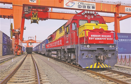 4月26日,成都国际班列十周年纪念专列暨首列“法国邮政DPD号”发车仪式在成都国际铁路港举行。