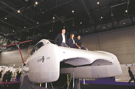 这是当地时间4月26日,在瑞士日内瓦举行的第48届日内瓦国际发明展上拍摄的一款零排放水翼船。