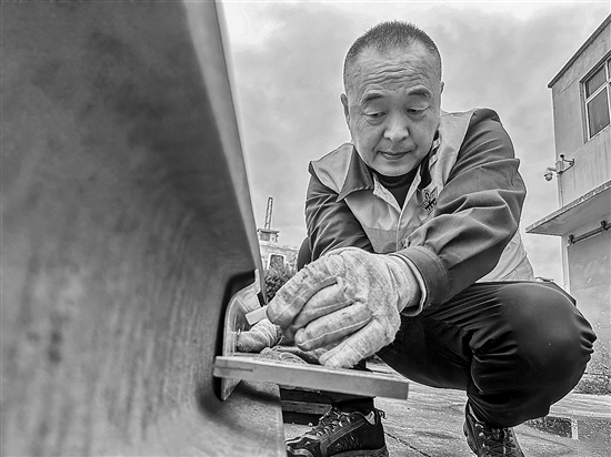 中国铁路郑州局集团有限公司南阳工务段职工李会杰经过反复研究测试,改良后的新式钢轨钻孔定位板采用铝合金材质,仅需将定位板平稳放在钢轨轨腰上画线,钻头中心正对准定位线两个步骤,即可将钻孔误差控制在0.5毫米以内,实现精准高效钻孔,有效提高铁路设备施工质量。