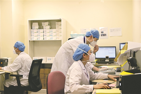 首都医科大学附属北京朝阳医院的急诊科医生在查看病人病历。今年“五一”劳动节假期,全国各地人流如潮,医院急诊科医生坚守岗位。本报记者 蔚可任 摄