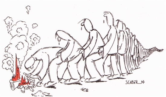 在天寒地冻的日子里,由于取暖设施的匮乏,人们只得依靠“传导”获取热量,让瑟瑟发抖的身体别倒下去——严冬早点过去吧。