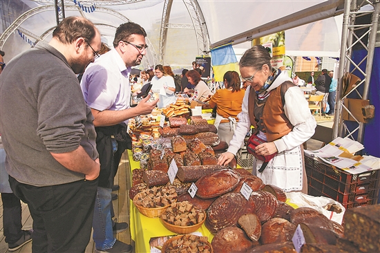 布鲁塞尔当日举行面包节活动,人们可在活动现场品尝、购买来自欧洲多地的风格各异的面包。
