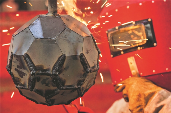 5月6日,在浙江省宁波舟山港北仑矿石码头机修分部修理三班举行了一场别开生面的“足球”焊接比赛,选手们需要在2毫米厚的球体表面上焊接90条焊缝,焊接完成后,球体内还将进行强度测试,检验焊接质量。通过焊接“球”赛,展现了焊工们的精湛技艺,激发了他们比学赶帮超的热情。蒋晓东 摄