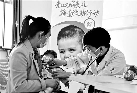 5月10日,无锡明慈心血管病医院的心血管病专家在为参加筛查的儿童进行诊断。