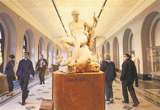 当地时间5月16日,人们在英国伦敦维多利亚与艾尔伯特(V&A)博物馆内参观。该博物馆始建于1852年,馆中藏品超过280万件,包括雕塑、绘画、珠宝、家具、纺织品等。新华社发