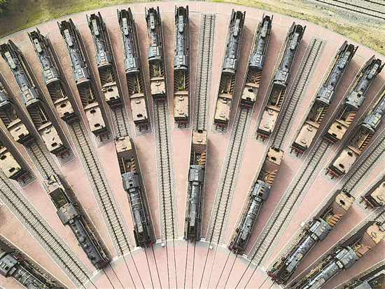 这是5月17日拍摄的大安北蒸汽机车陈列馆。陈列馆内,存放着来自东北地区的近80台蒸汽机车。这些机车见证了新中国工业的历史和发展。