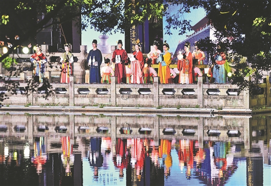 福建福州,博物馆之夜晚会举行,晚会由不同朝代服装走秀、诗词朗诵、文物讲解等组成,吸引了许多民众前来观看。张斌 摄/视觉中国